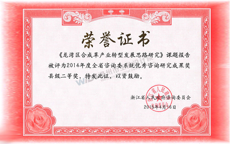 龍灣區(qū)合成革產(chǎn)業(yè)轉(zhuǎn)型發(fā)展思路研究 省咨詢(xún)委系統(tǒng)優(yōu)秀咨詢(xún)研究成果獎(jiǎng)縣級(jí)二等獎(jiǎng)