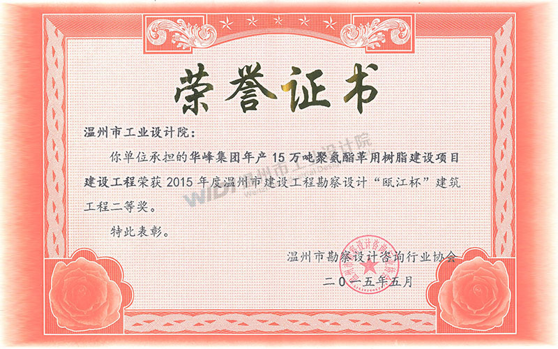 華峰集團(tuán)年產(chǎn)15萬(wàn)噸聚氨酯革用樹(shù)脂建設(shè)項(xiàng)目建設(shè)工程 甌江杯二等獎(jiǎng)