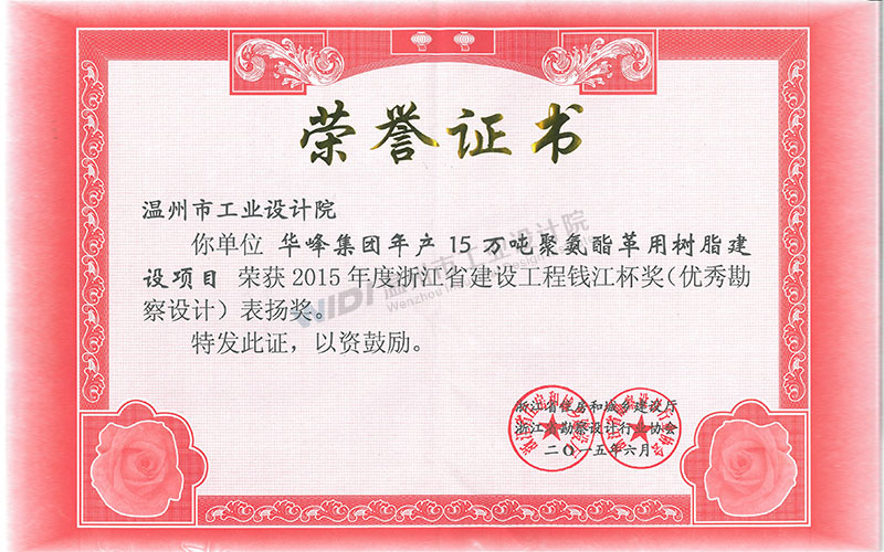 華峰集團(tuán)年產(chǎn)15萬(wàn)噸聚氨酯革用樹(shù)脂建設(shè)項(xiàng)目建設(shè)工程 錢(qián)江杯表?yè)P(yáng)獎(jiǎng)
