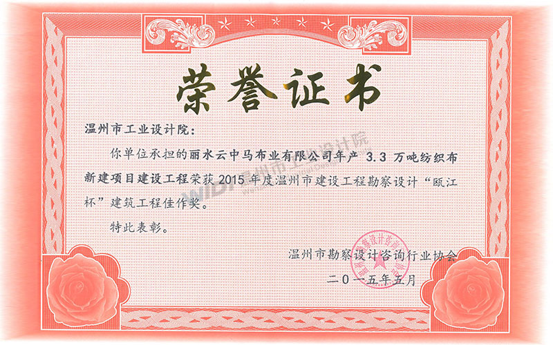 麗水云中馬布業(yè)有限公司年產(chǎn)3.3萬(wàn)噸紡織布新建項(xiàng)目建設(shè)工程 甌江杯建筑工程佳作獎(jiǎng)
