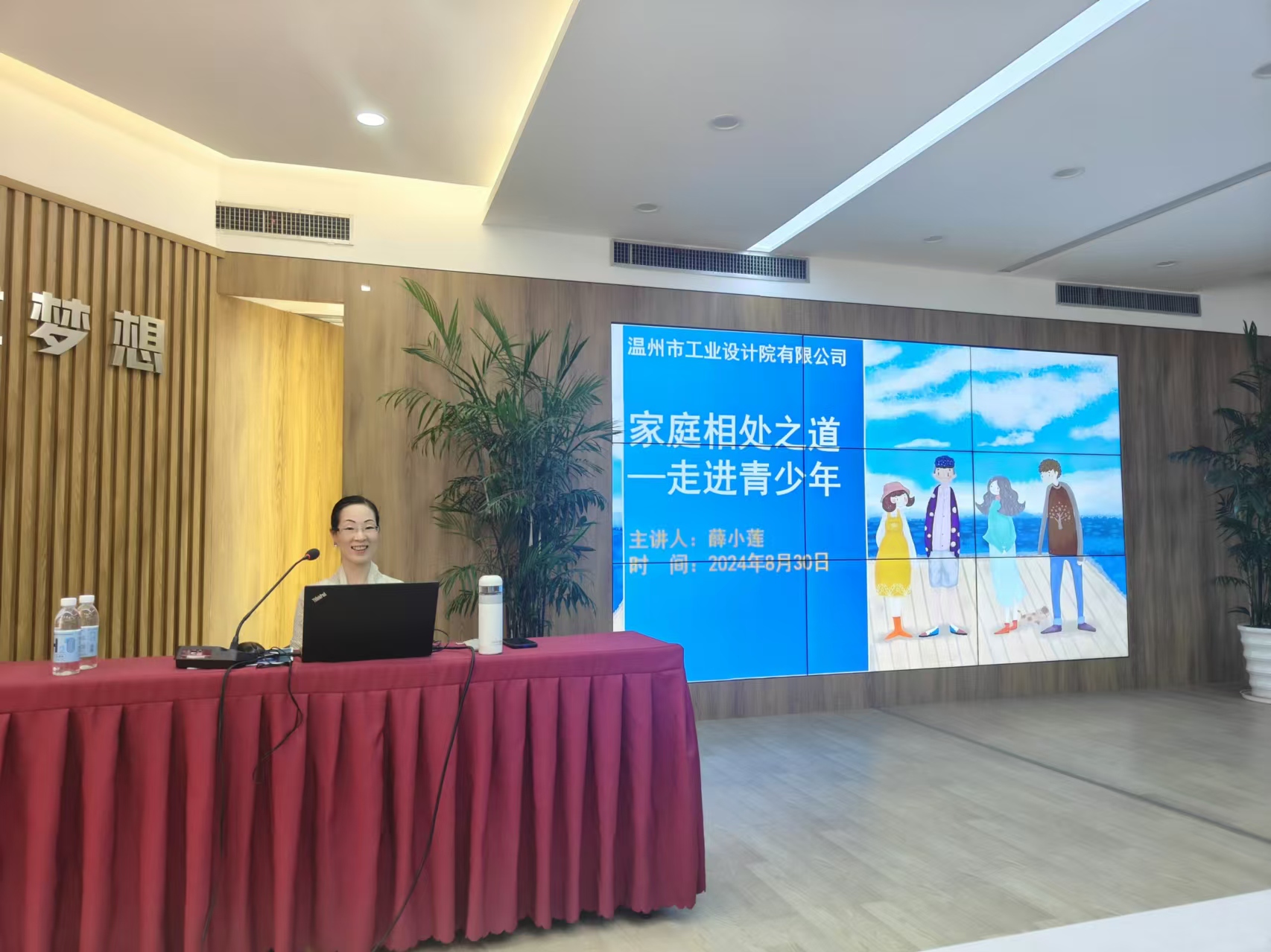 为了提升员工家庭生活质量,增进家长与青少年子女之间的理解与沟通,温州市工业设计院有限公司工会委员会于8月30日在公司七楼会议室成功举办了一场以“家庭相处之道——走进青少年”为主题的心理讲座活动。此次活动吸引了不少员工的积极参与,现场气氛温馨而热烈。...